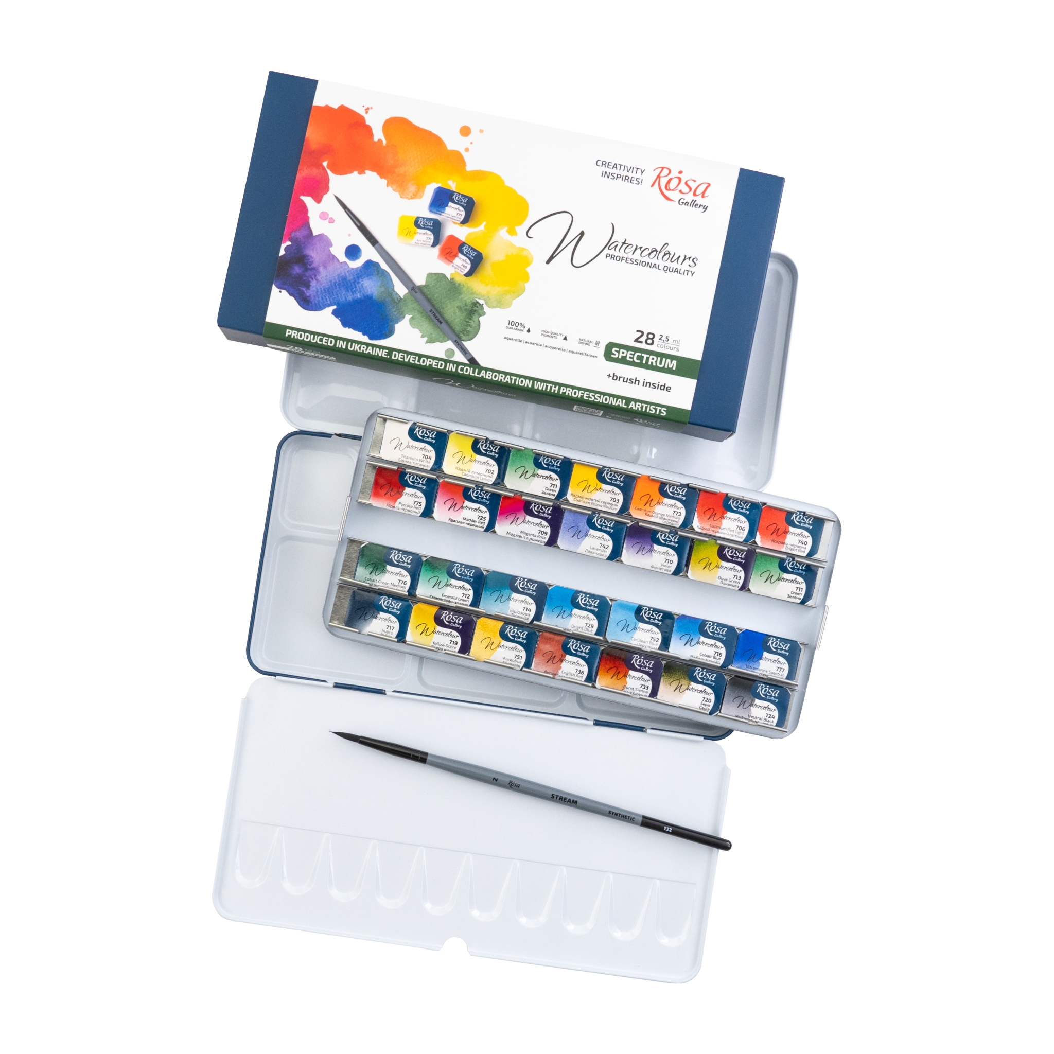 ROSA Paints are developed in close collaboration with professional artists, ensuring that every product meets their exacting standards. Feedback on features such as colour palettes, transparency, intensity, and consistency is taken onboard when devising paint formulas. The ROSA Gallery Fine Art Watercolour Paints, proudly made in Ukraine, utilise high-quality materials and specialised equipment to guarantee superior quality.